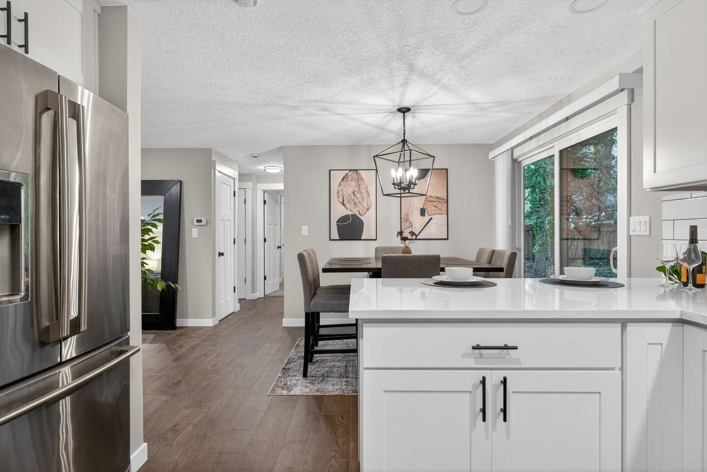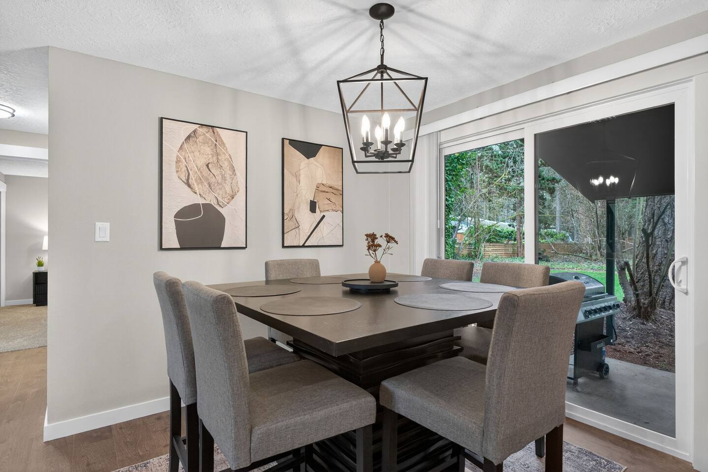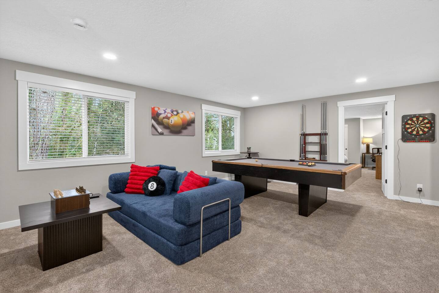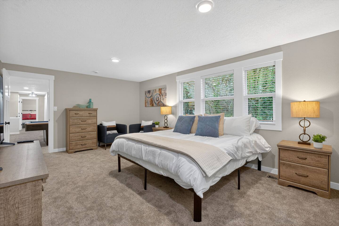 Welcome to your spacious Beaverton retreat — thoughtfully designed for comfort, connection, and convenience. Whether you're visiting for work, relocating, exploring Portland, or gathering with family, this 4-bedroom home offers the perfect blend of space and functionality. 🛏 Sleeping Arrangements With 5 total beds across 4 bedrooms, the home comfortably accommodates families and groups. Each bedroom is arranged to provide privacy and restful sleep, making it ideal for longer stays, business travelers, or multi-generational trips. 🛁 Bathrooms Two full bathrooms provide convenience for larger groups, with plenty of space for everyone to get ready comfortably. 🛋 Living & Entertainment Spaces The home features: A welcoming main living room for relaxing and socializing A separate family/game room, perfect for movie nights, board games, or giving kids their own space A dedicated dining room for shared meals and gatherings Whether you're hosting dinner, working remotely, or simply unwinding after a day out, there's room for everyone to spread out. 🍳 Fully Equipped Kitchen The kitchen is fully stocked and ready for home-cooked meals, morning coffee, or extended stays. With a dedicated dining area nearby, it’s easy to gather and enjoy meals together. 🌿 Outdoor Space Step outside to your private backyard patio, perfect for: Morning coffee Evening wine Casual outdoor dining Letting kids enjoy some fresh air The backyard adds a peaceful, residential feel while still being close to everything. 📍 Prime Beaverton Location Located in a quiet residential neighborhood at 18240 Jay St, Beaverton, you’re close to some of the area’s most well-known destinations: Nike World Headquarters (approx. 10–15 minutes) Intel Campus The Streets of Tanasbourne (shopping & dining) Washington Square Mall Tualatin Hills Nature Park Topgolf Hillsboro Easy access to Highway 26 About 20–25 minutes to Downtown Portland Close to Oregon Zoo & Washington Park Approximately 25 minutes to Portland International Airport (PDX) Whether you're here for business meetings, sports tournaments, college visits, or exploring Portland’s food and outdoor scene, this home puts you in a convenient central location. ✨ Ideal For: Families Business travelers Corporate stays Relocations Extended stays Small groups Enjoy the space of a full home with the comfort and convenience you need for a relaxing stay in Beaverton.