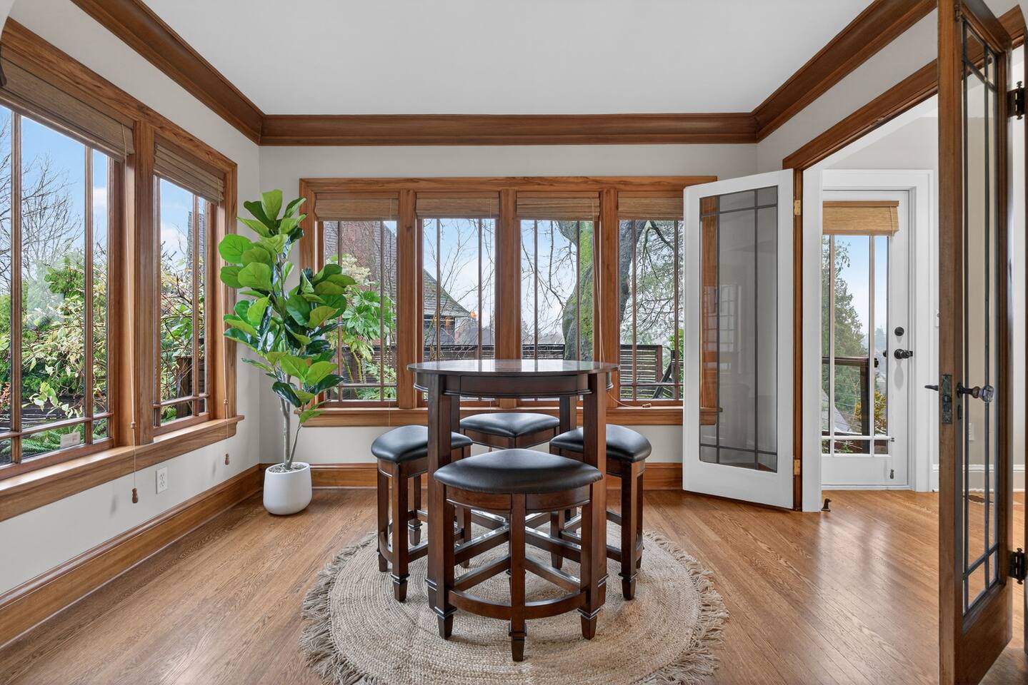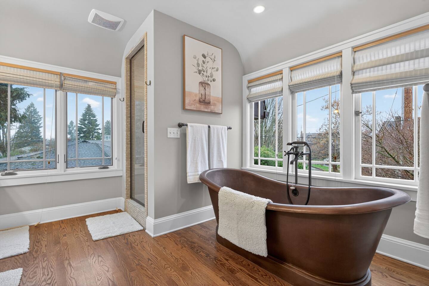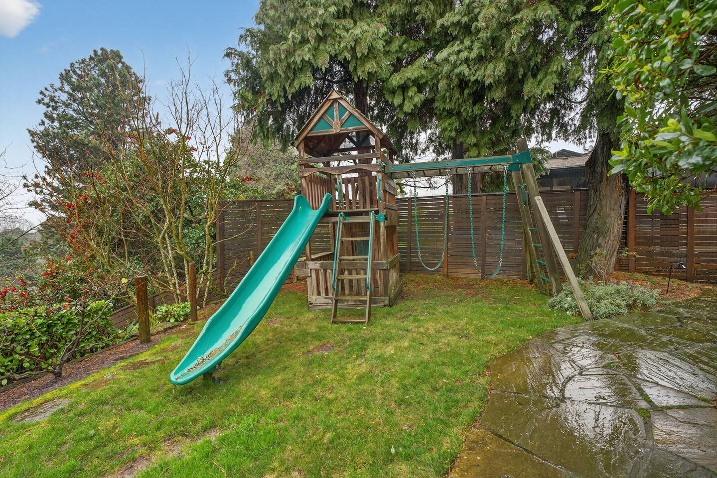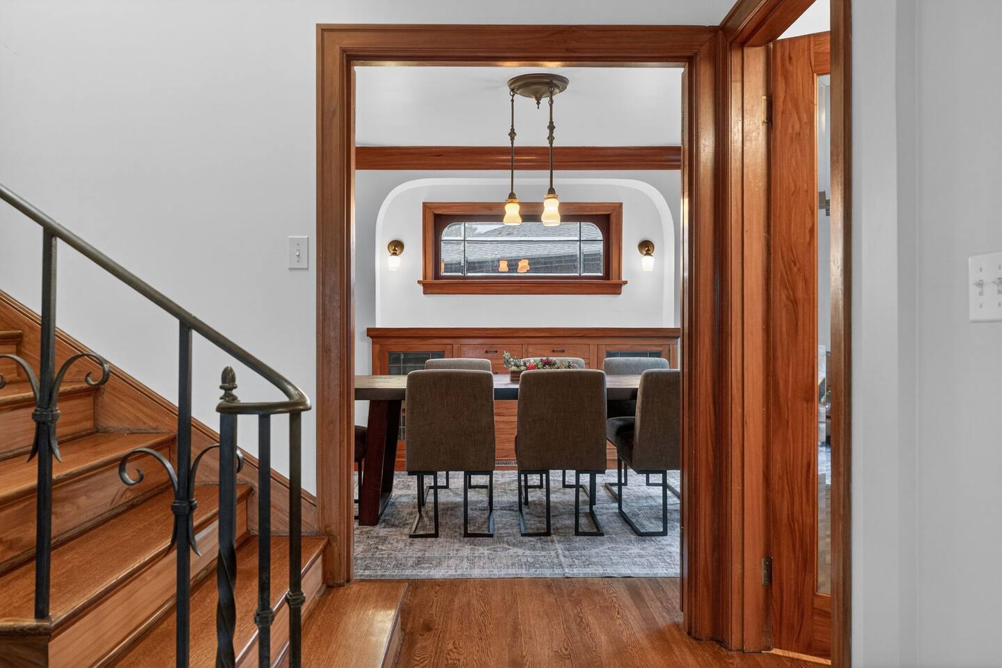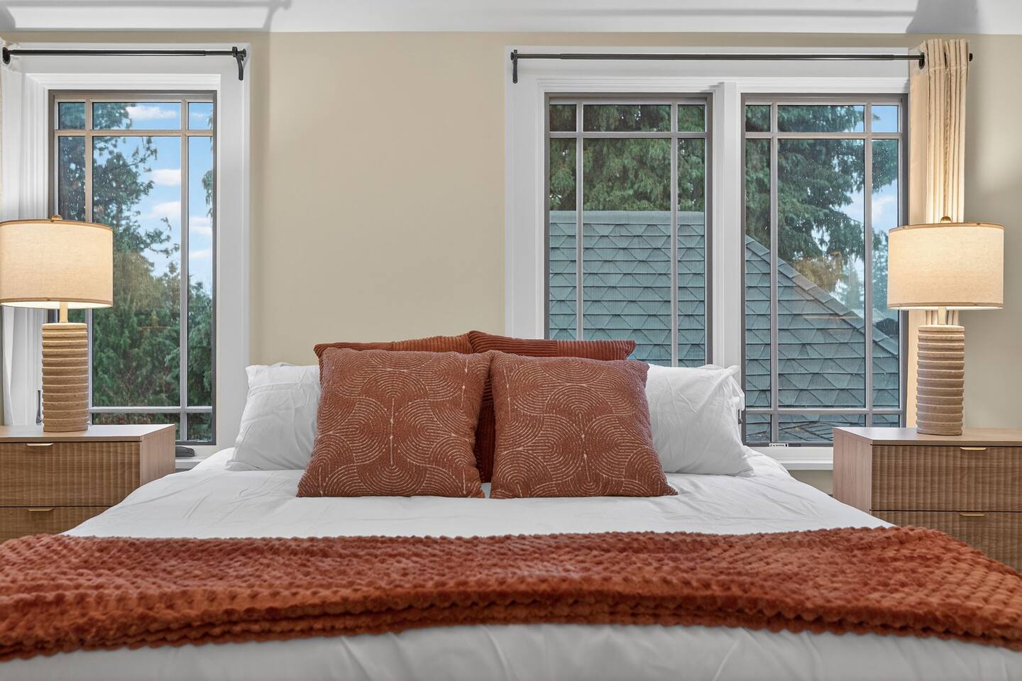 Inside, the home welcomes you with warm architectural details, beautiful hardwood floors, and spacious gathering areas ideal for families or groups. The serene primary suite is a true sanctuary, featuring a cozy fireplace, large windows with peaceful views, and a spa-like atmosphere perfect for unwinding. The bathrooms include upscale finishes, highlighted by a stunning soaking tub set beneath large windows for a relaxing, light-filled experience. For entertainment and activity, the home truly stands out. Enjoy a vibrant game room with a ping-pong table, perfect for friendly competition, as well as a fully equipped workout room to keep up with your fitness routine during your stay. Multiple living and dining areas allow everyone to spread out comfortably while still feeling connected. Step outside to the private patio and backyard, where you’ll find outdoor seating surrounded by greenery, an ideal spot for morning coffee, casual meals, or evening conversations. The outdoor area also features a built-in grill station, making it easy to enjoy al fresco dining. Families will love the yard space, complete with a play structure that adds an extra layer of fun for younger guests. You’re just minutes from some of Portland’s most iconic destinations: Alberta Arts District for dining, coffee shops, and local culture Hollywood District for shopping, entertainment, and essentials Laurelhurst Park for walking trails and outdoor relaxation Easy access to Downtown Portland and major routes for exploring the city and beyond Whether you’re visiting for a family getaway, an extended stay, or a work-from-anywhere retreat, this home blends elevated design with everyday comfort, creating a welcoming space for an unforgettable Portland stay.