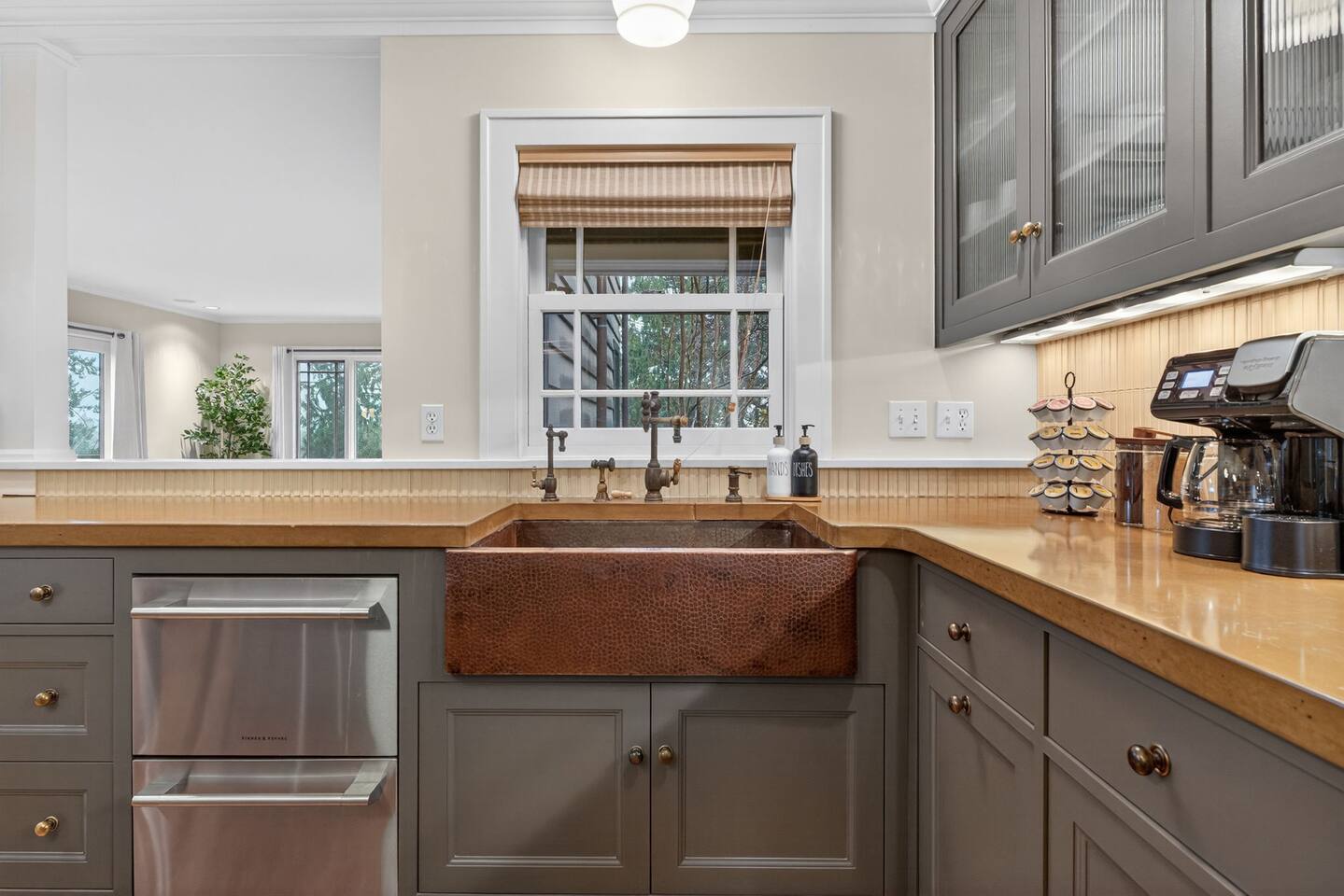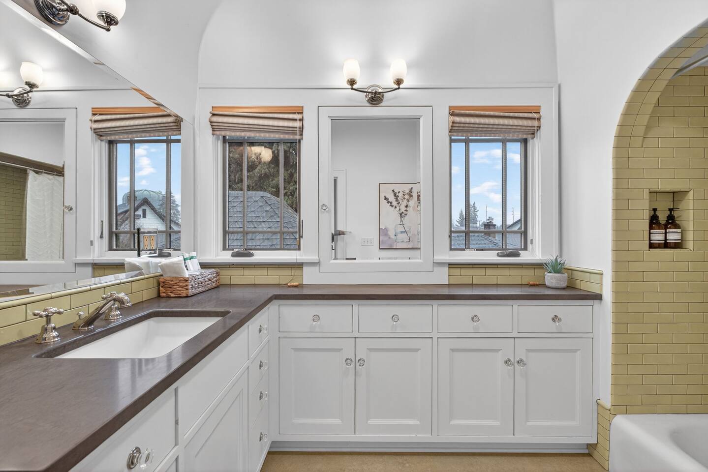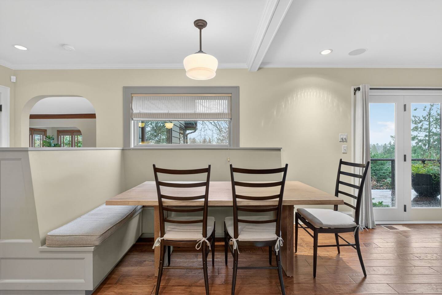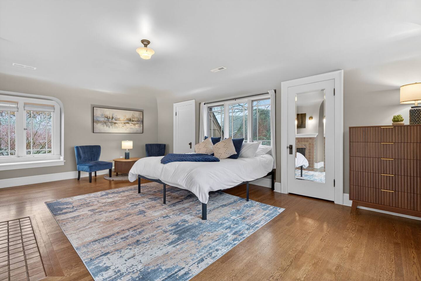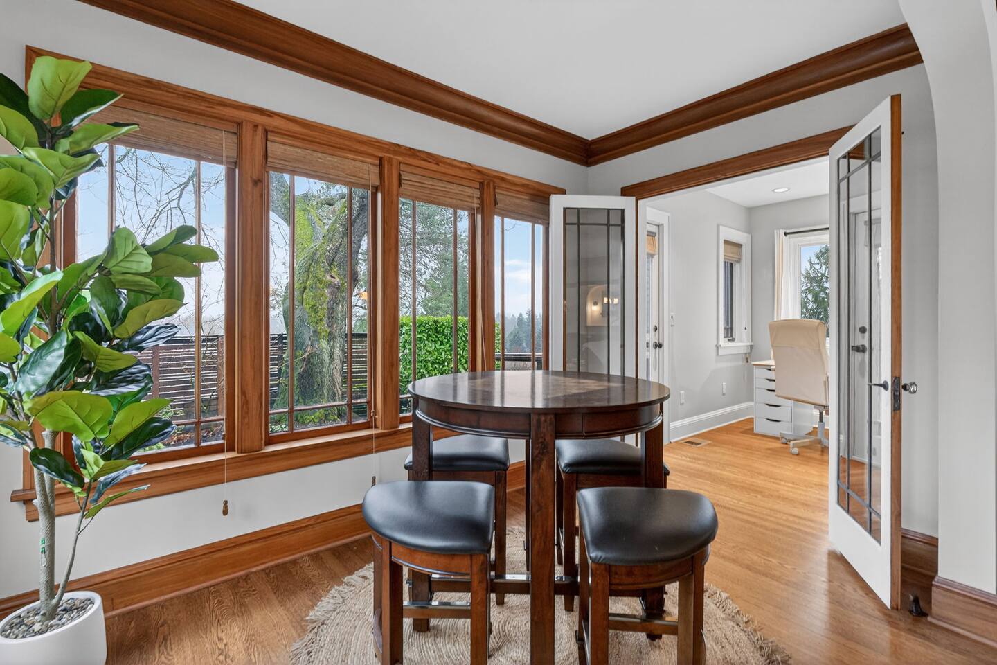 Inside, the home welcomes you with warm architectural details, beautiful hardwood floors, and spacious gathering areas ideal for families or groups. The serene primary suite is a true sanctuary, featuring a cozy fireplace, large windows with peaceful views, and a spa-like atmosphere perfect for unwinding. The bathrooms include upscale finishes, highlighted by a stunning soaking tub set beneath large windows for a relaxing, light-filled experience. For entertainment and activity, the home truly stands out. Enjoy a vibrant game room with a ping-pong table, perfect for friendly competition, as well as a fully equipped workout room to keep up with your fitness routine during your stay. Multiple living and dining areas allow everyone to spread out comfortably while still feeling connected. Step outside to the private patio and backyard, where you’ll find outdoor seating surrounded by greenery, an ideal spot for morning coffee, casual meals, or evening conversations. The outdoor area also features a built-in grill station, making it easy to enjoy al fresco dining. Families will love the yard space, complete with a play structure that adds an extra layer of fun for younger guests. You’re just minutes from some of Portland’s most iconic destinations: Alberta Arts District for dining, coffee shops, and local culture Hollywood District for shopping, entertainment, and essentials Laurelhurst Park for walking trails and outdoor relaxation Easy access to Downtown Portland and major routes for exploring the city and beyond Whether you’re visiting for a family getaway, an extended stay, or a work-from-anywhere retreat, this home blends elevated design with everyday comfort, creating a welcoming space for an unforgettable Portland stay.