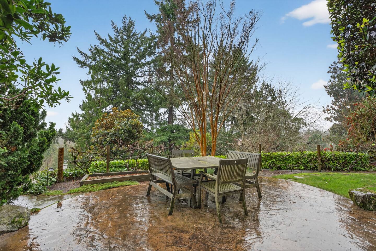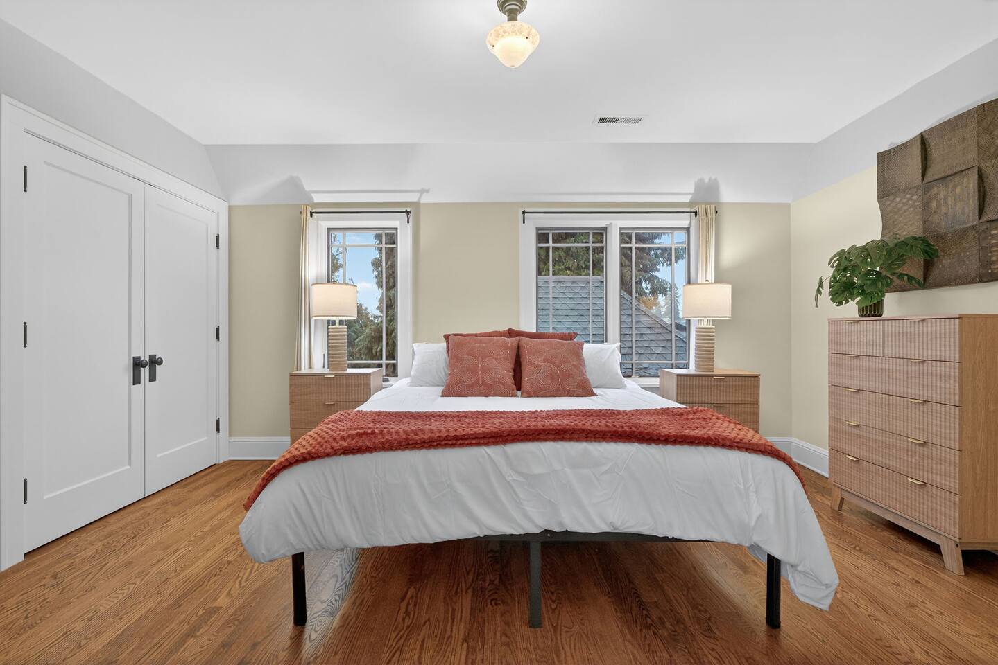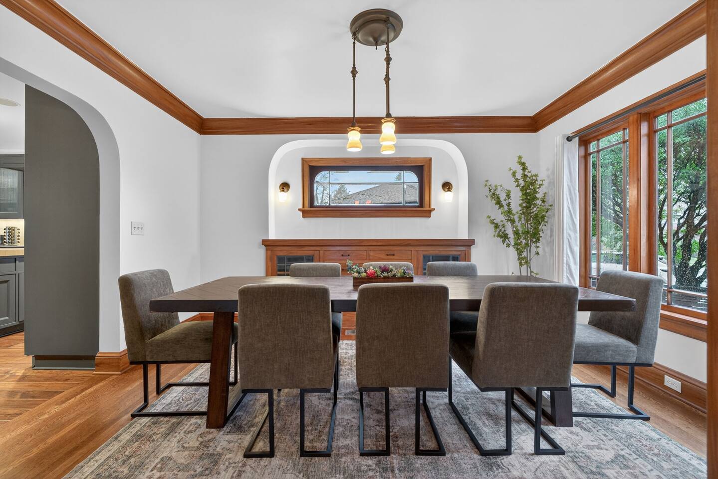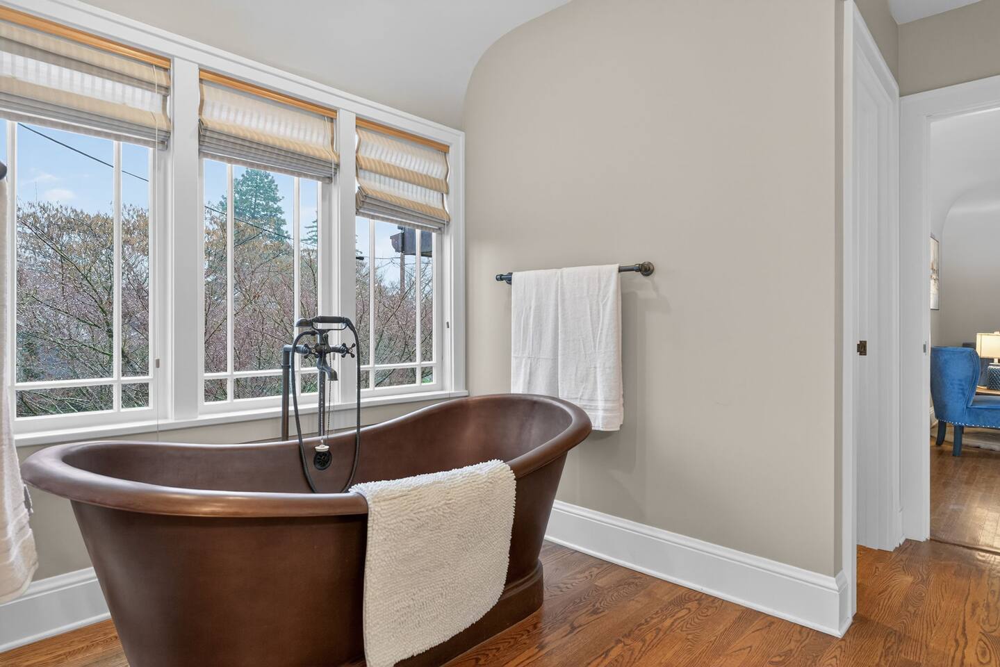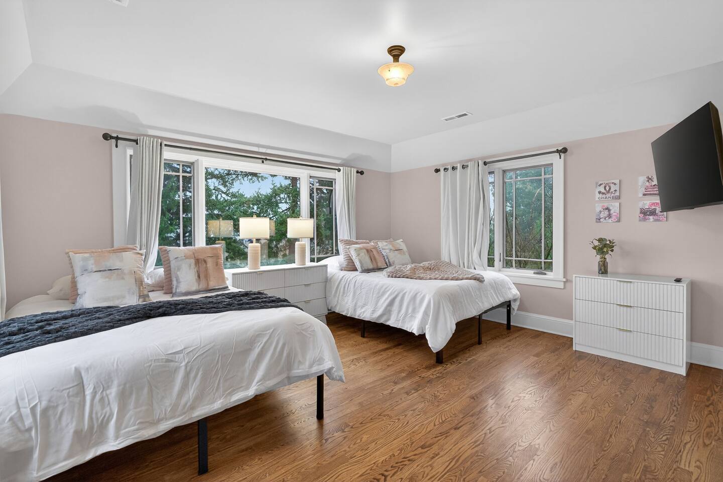 Inside, the home welcomes you with warm architectural details, beautiful hardwood floors, and spacious gathering areas ideal for families or groups. The serene primary suite is a true sanctuary, featuring a cozy fireplace, large windows with peaceful views, and a spa-like atmosphere perfect for unwinding. The bathrooms include upscale finishes, highlighted by a stunning soaking tub set beneath large windows for a relaxing, light-filled experience. For entertainment and activity, the home truly stands out. Enjoy a vibrant game room with a ping-pong table, perfect for friendly competition, as well as a fully equipped workout room to keep up with your fitness routine during your stay. Multiple living and dining areas allow everyone to spread out comfortably while still feeling connected. Step outside to the private patio and backyard, where you’ll find outdoor seating surrounded by greenery, an ideal spot for morning coffee, casual meals, or evening conversations. The outdoor area also features a built-in grill station, making it easy to enjoy al fresco dining. Families will love the yard space, complete with a play structure that adds an extra layer of fun for younger guests. You’re just minutes from some of Portland’s most iconic destinations: Alberta Arts District for dining, coffee shops, and local culture Hollywood District for shopping, entertainment, and essentials Laurelhurst Park for walking trails and outdoor relaxation Easy access to Downtown Portland and major routes for exploring the city and beyond Whether you’re visiting for a family getaway, an extended stay, or a work-from-anywhere retreat, this home blends elevated design with everyday comfort, creating a welcoming space for an unforgettable Portland stay.