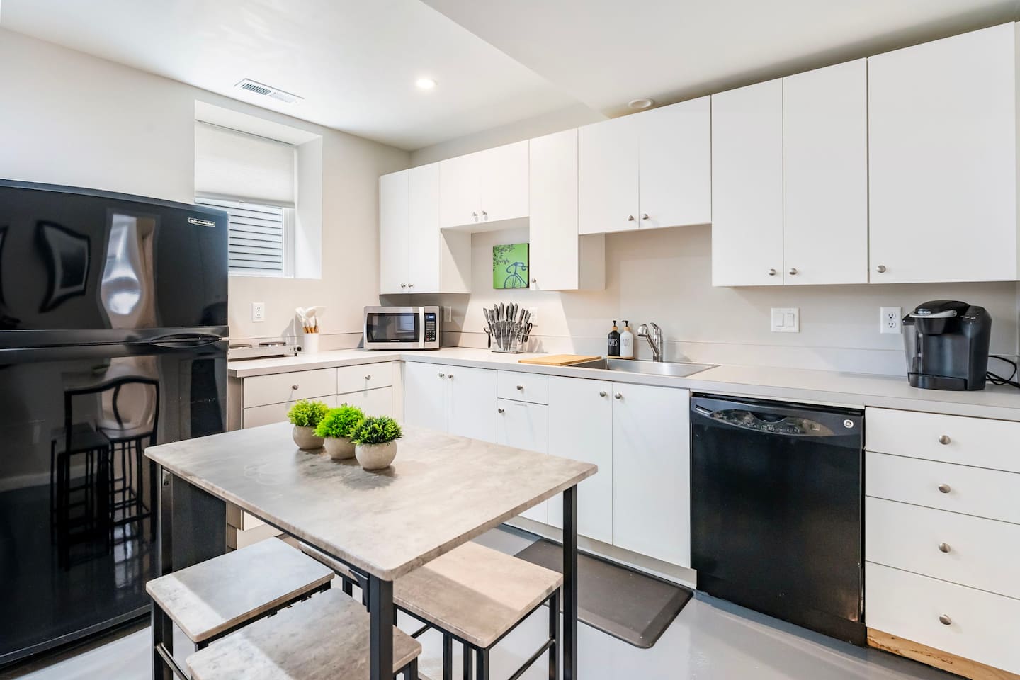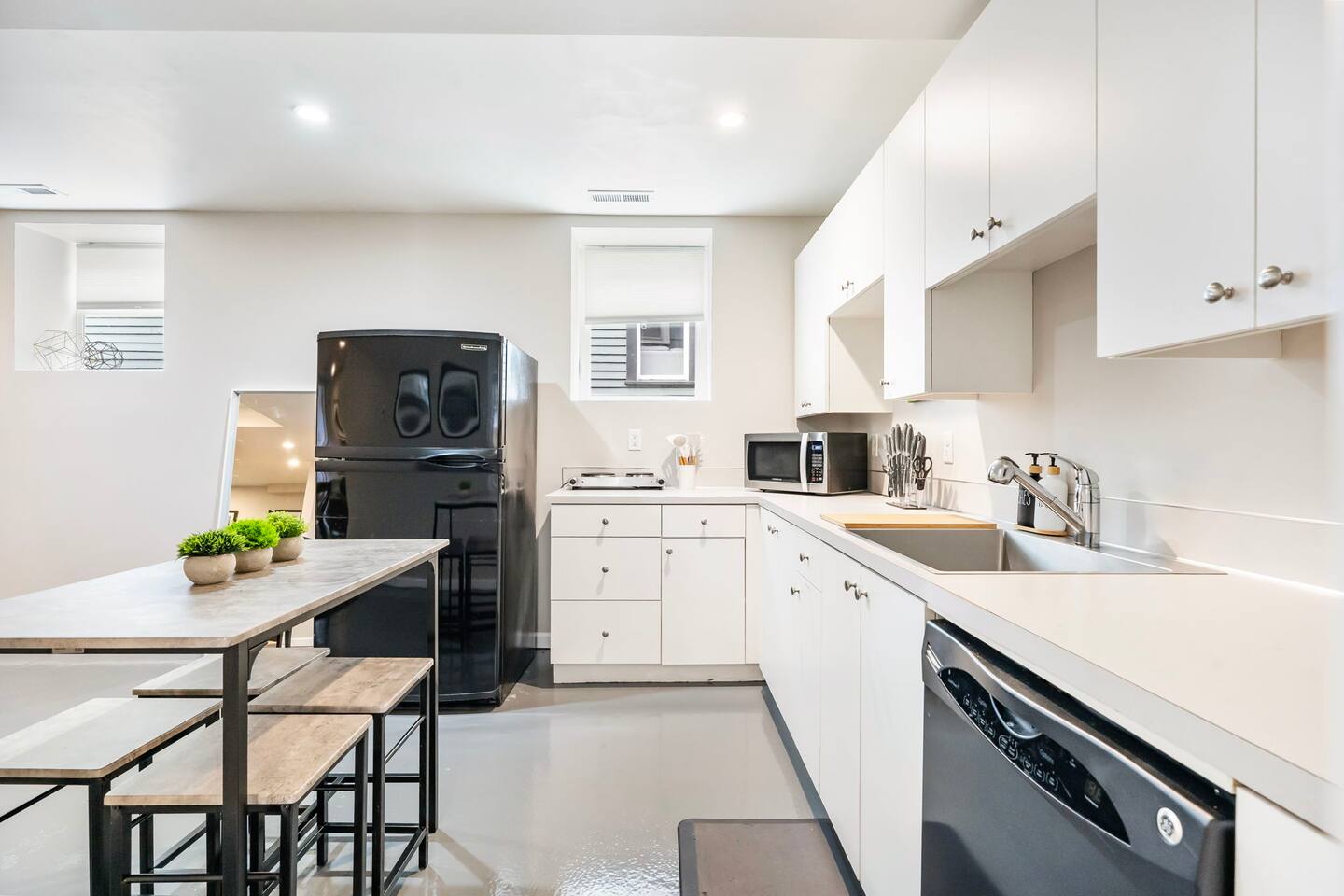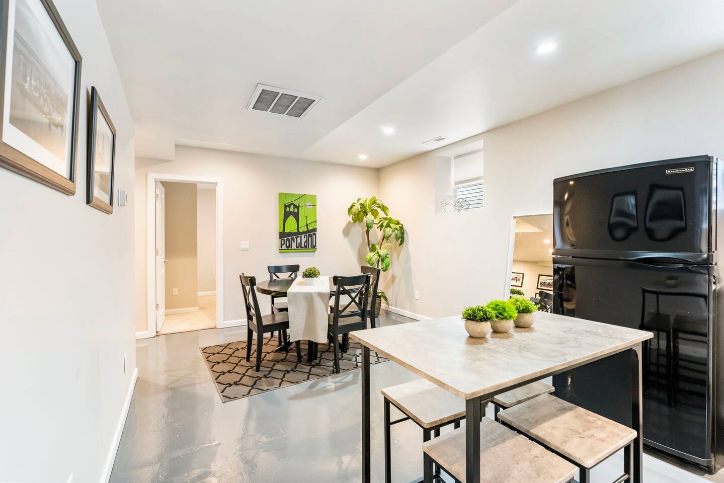 This spacious and bright two-bedroom, one-bath basement apartment is the perfect retreat in Portland’s Irvington neighborhood. Thoughtfully designed, the apartment features large windows that fill the space with natural light, creating a warm and inviting atmosphere. The ceiling height is not that of your typical basement so you won't feel cramped unless you are 7 feet tall. The living area offers plenty of comfortable seating, ideal for relaxing or catching up on your favorite shows. The fully equipped kitchenette includes everything you need to prepare meals during your stay. Both bedrooms feature cozy beds and ample storage to make you feel at home. The bathroom is clean and well-maintained, complete with fresh towels and essential toiletries. With its combination of brightness, comfort, and functionality, this apartment provides a welcoming space for both short and long-term stays. We are redoing the floors and upgrading some of the furniture with new picture to follow.
