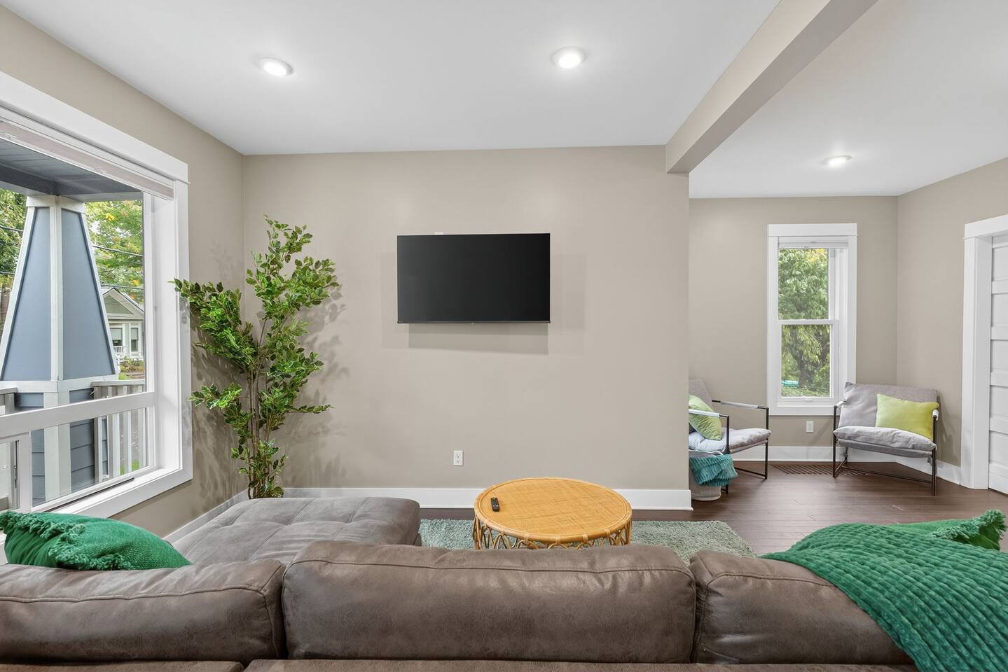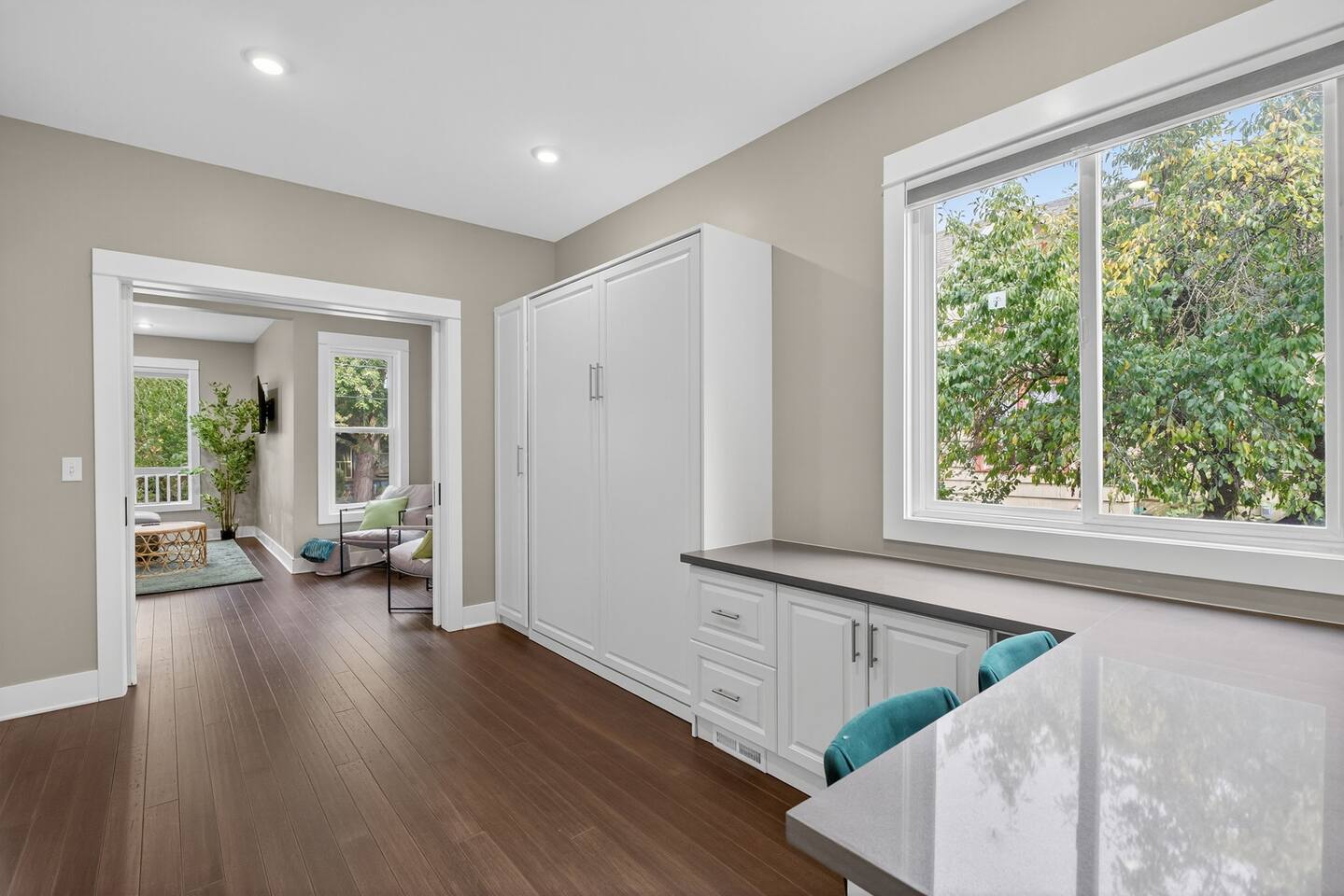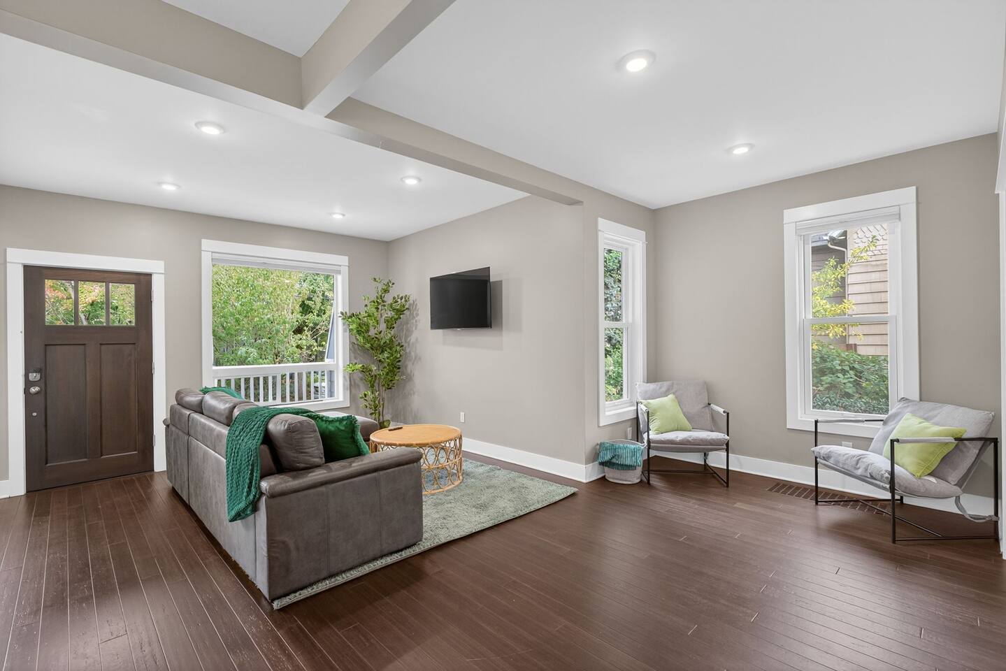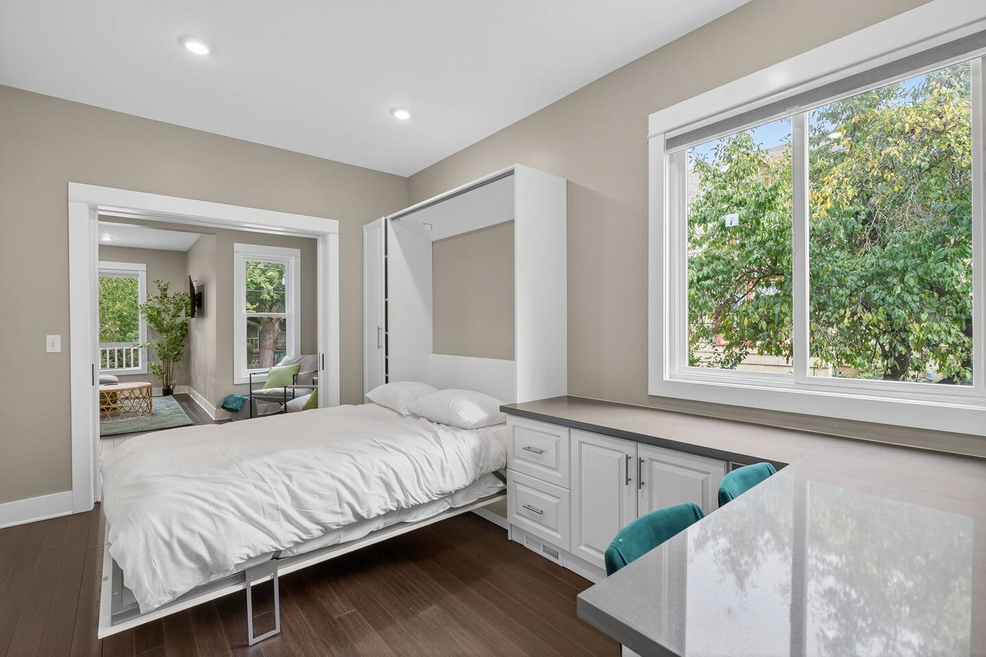 Experience historic charm with modern comforts in this beautifully restored 1919 Craftsman in Portland’s Irvington neighborhood. Offering 4 private ensuite bedrooms, a flexible main floor with Murphy bed/office, and a fully fenced backyard for pets, this 2,500 sq. ft. furnished home is ideal for families, relocations, or traveling professionals. Walk to cafes, shops, and Irving Park, with hospitals and downtown just minutes away. Backyard and laundry is shared with downstairs short term rental.