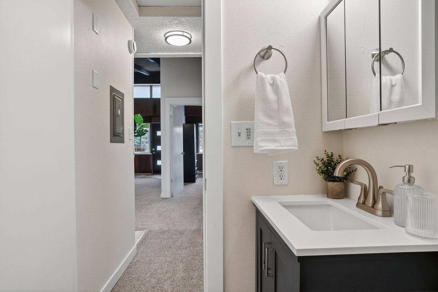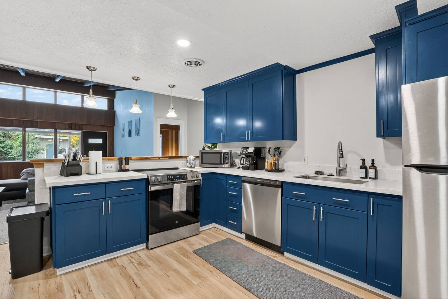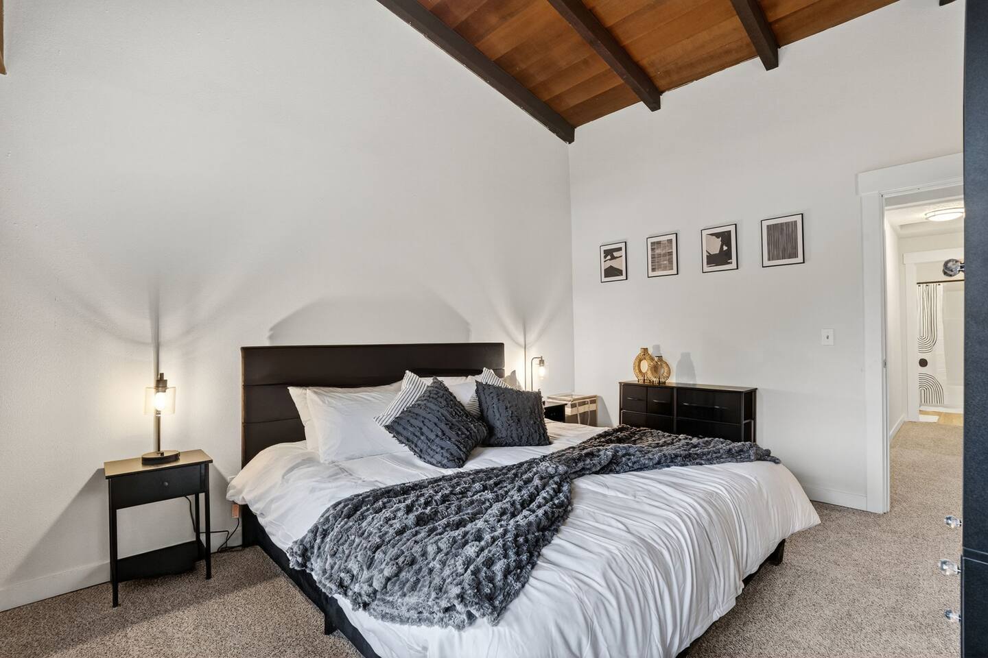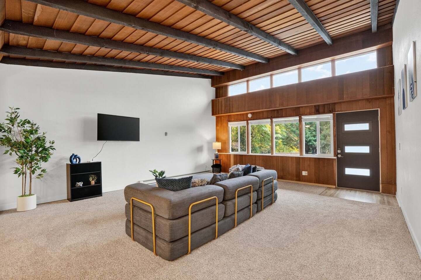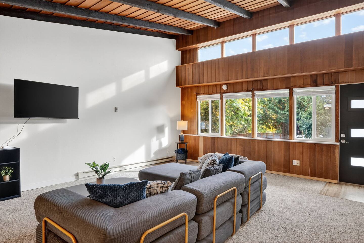Discover the largest and most spacious home in our Cornell collection — a mid-century retreat that blends timeless design with modern convenience. This 1-bedroom unit welcomes you with warm wood interiors, dramatic vaulted ceilings, and walls of windows framing the surrounding greenery. Inside, an open living and dining area creates the perfect space for gatherings or quiet evenings in. The fully equipped kitchen offers ample counter space and updated appliances for extended stays. Bedroom is comfortably furnished, while the bathroom features modern fixtures and essentials. Enjoy a morning coffee or evening glass of wine in your shared yard. On-site coined laundry and plenty of storage make this home ideal for long-term guests or families. 🌳 Nearby Highlights Forest Park – miles of hiking trails and scenic views just minutes away. Macleay Park – a peaceful urban oasis. Portland Japanese Garden – one of the most beautiful gardens in North America. 🍴 Local Dining Bethany’s Table – cozy, farm-to-table neighborhood bistro. Top Burmese Bistro Royale – famous for flavorful curries and tea leaf salad. Kells Brewery – local favorite for craft beer lovers. Whether you’re visiting for work, family, or a nature escape, this spacious mid-century haven offers comfort, character, and easy access to Portland’s most beloved parks and eateries.
