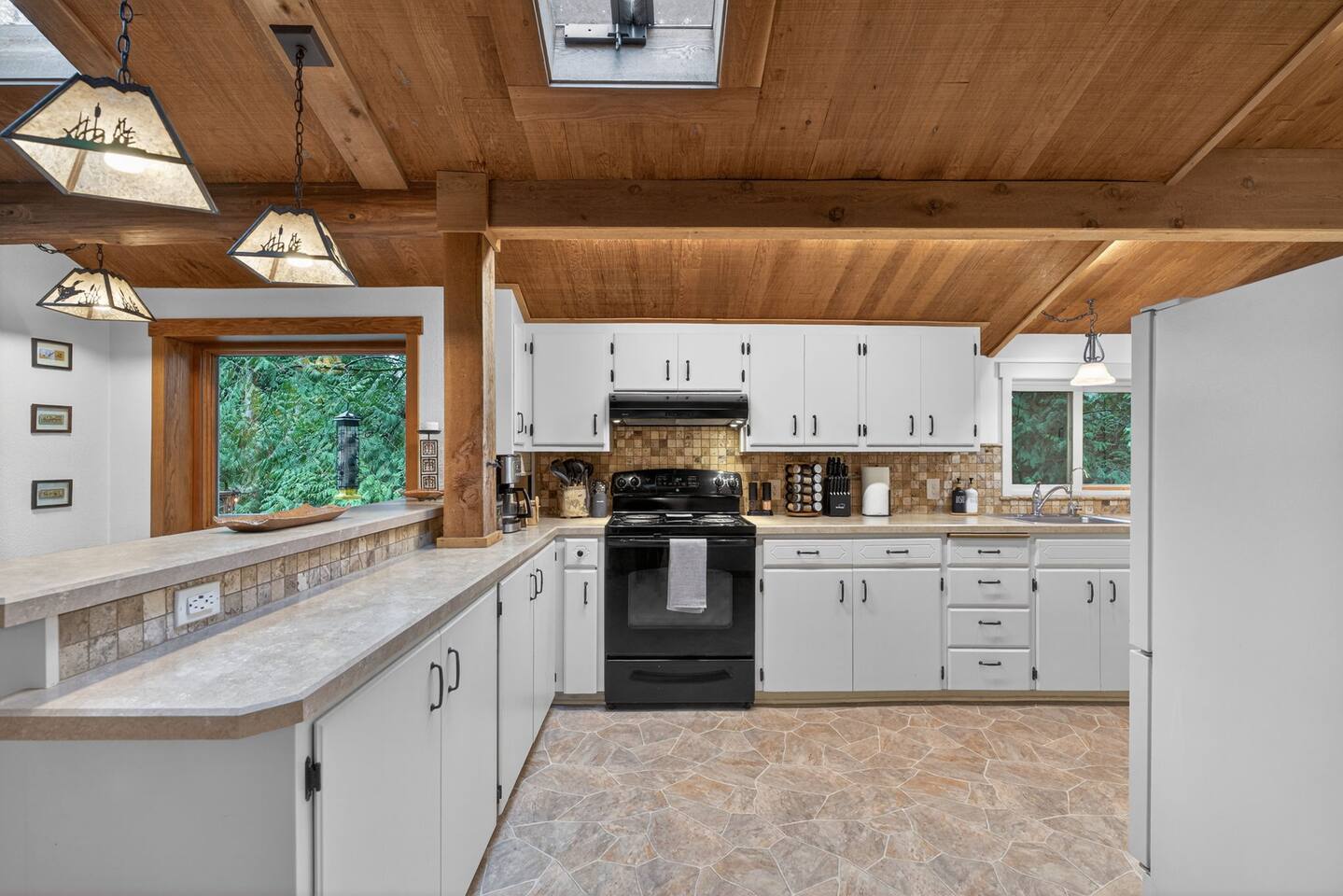 Charming 2‑bed, 2‑bath Portland retreat on a serene half‑acre lot. Vaulted ceilings, cozy fireplaces, updated kitchen, and spacious living areas. Relax on the deck, enjoy the wooded surroundings, and easy access to downtown, shops, and parks. Perfect for couples, small families, or business travelers seeking comfort and nature in one spot.