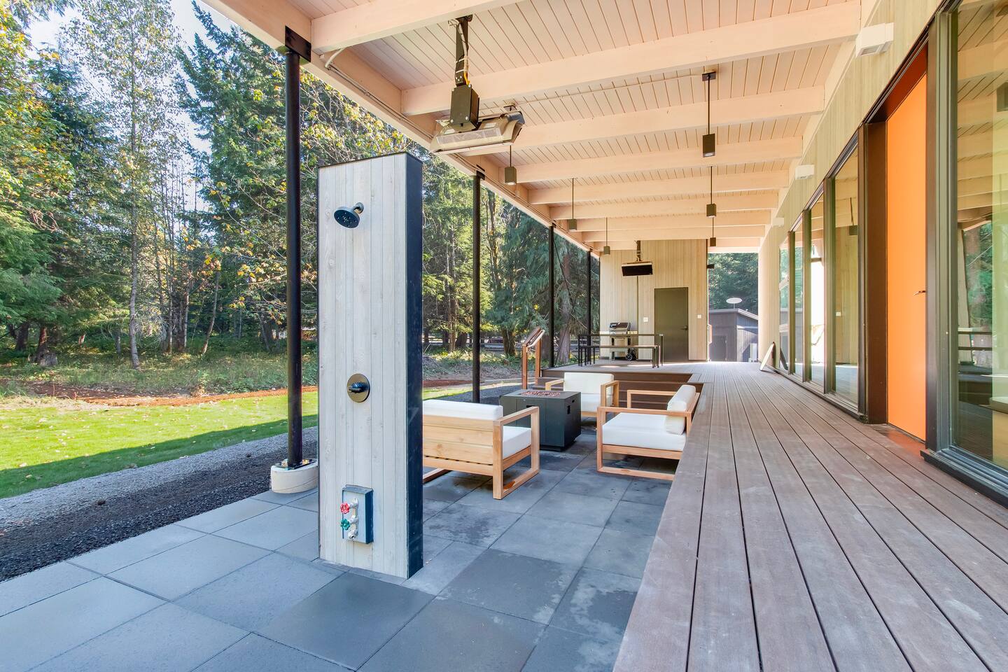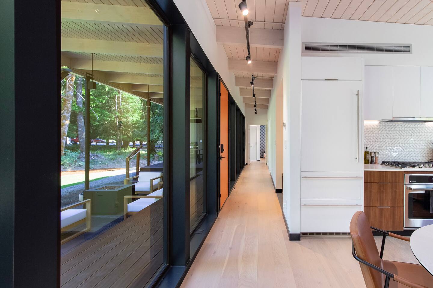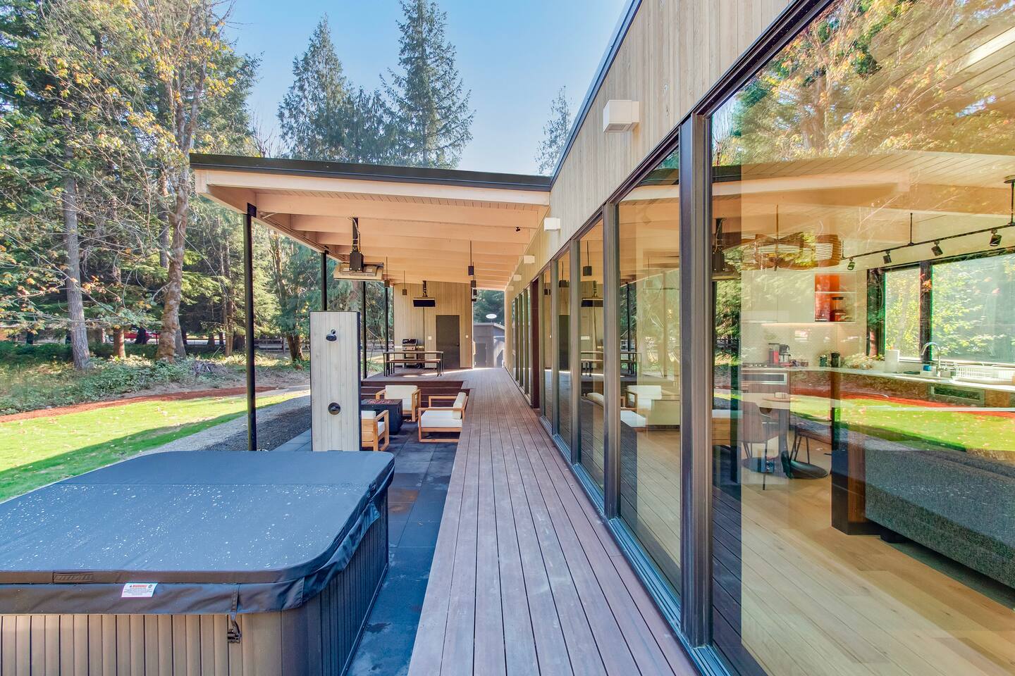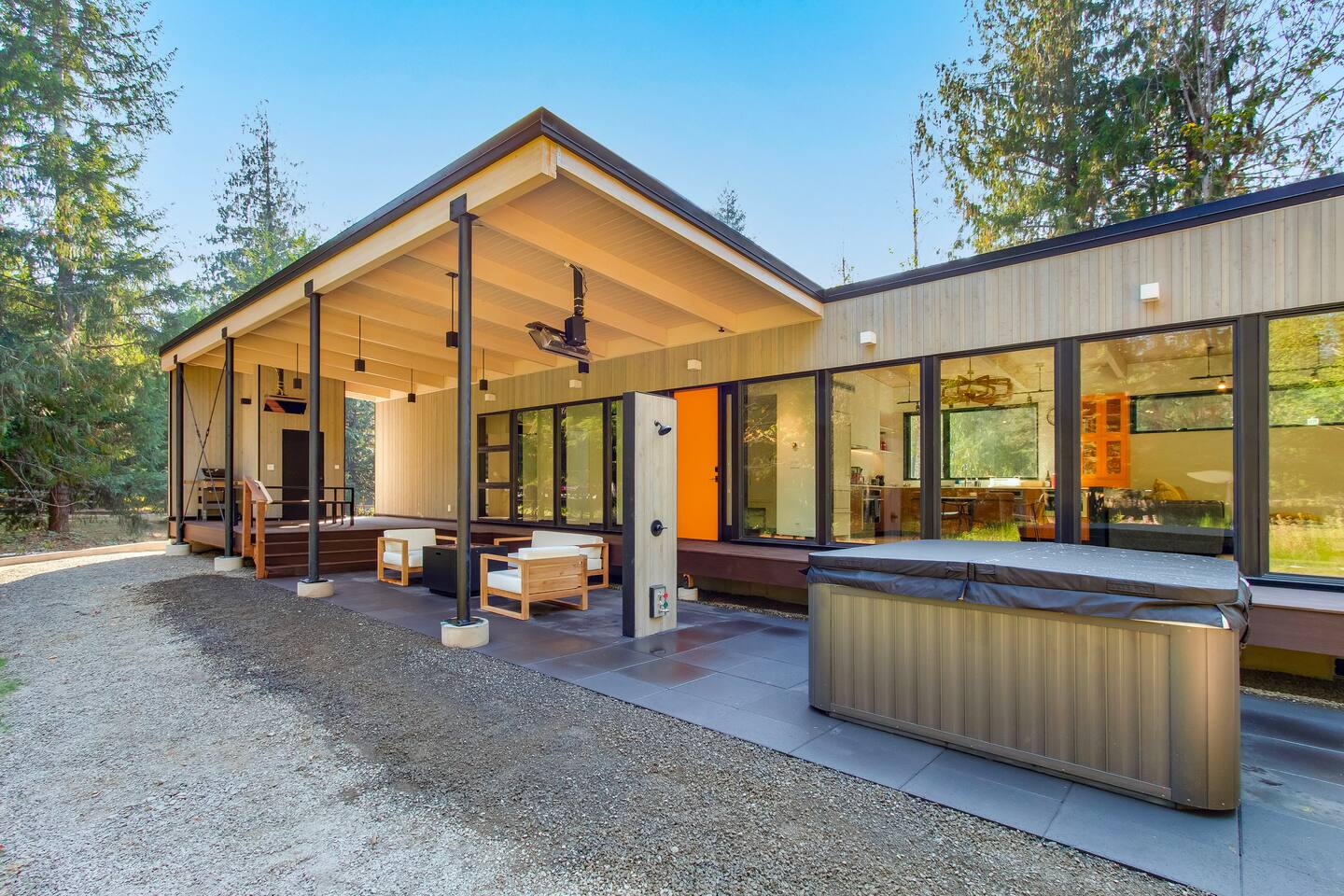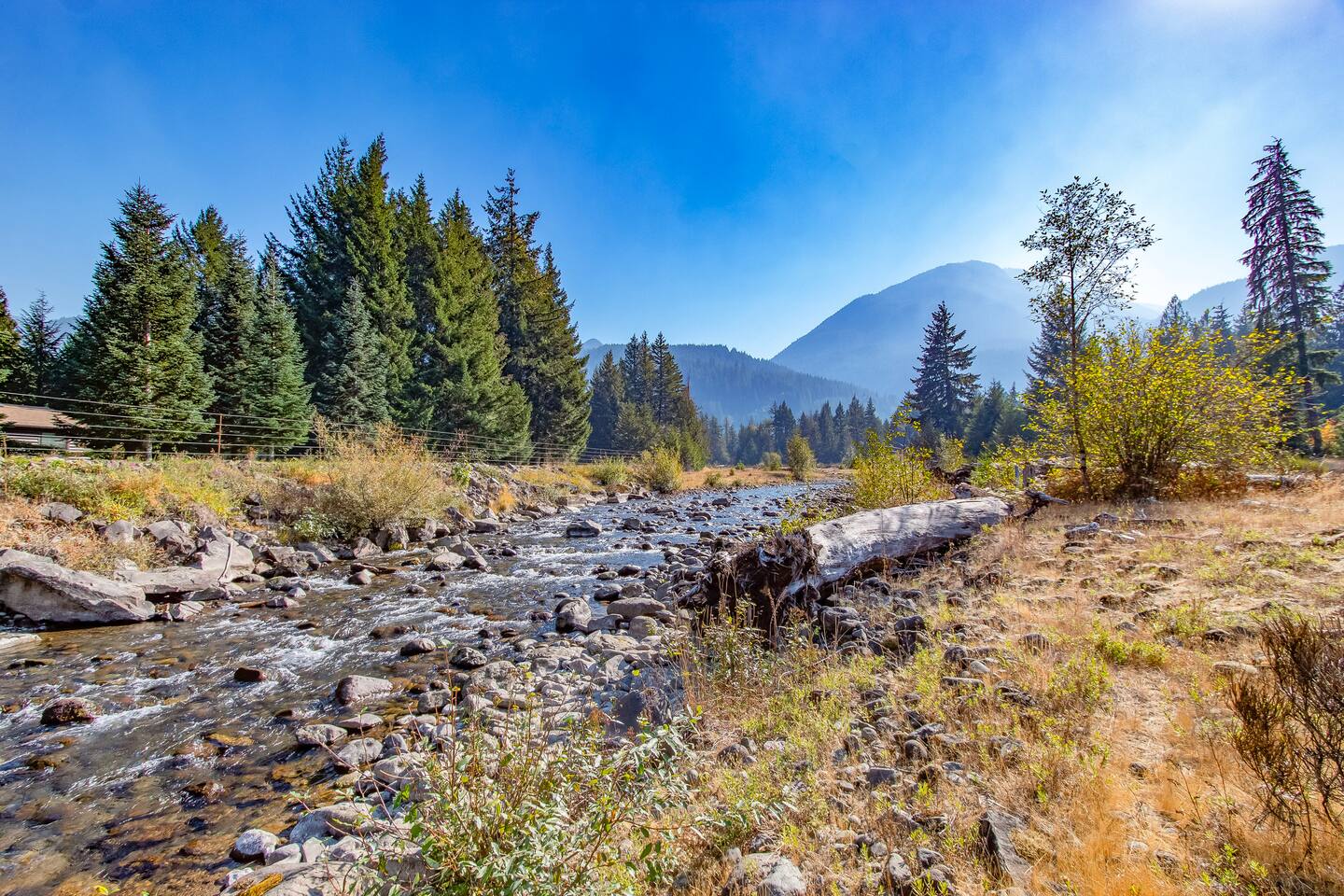 About this space Welcome to our brand new cabin. Located on two+ acres at the peaceful end of a rural road along with its sister cabin, it features private access to Johnson Creek with the views of Mount Rainier, two bathrooms, a large washer and gas dryer, a hot tub, and a covered outdoor area with propane heating, fire pit and grill. The modern and airy living space, high-end furnishings, and appliances evoke a home-away-from-home feeling. We are just under 10m from town and just under 30m from White Pass. The space The house features blinds on all windows, including blackout ones in the bedrooms, two-zone central heating and AC, a gas fireplace, vaulted wooden ceilings with exposed beams, panoramic windows, high-quality furnishings, high-end appliances, and contemporary tile and glass bathrooms with heated floors. An expansive outdoor area features a hot tub and a shower with cold and hot water. Under the covered portion of the deck you will find a dining area, a lounge area with a fire pit, propane heating, and a BBQ. Other amenities include a gas range, two bathrooms, a fully stocked kitchen (with quality frying pans among other things), a washer and a dryer, an OLED TV with Netflix, Amazon Prime, Airplay and Miracast, high speed Internet (courtesy of Starlink), and a Tesla charger. You will get a great night's rest on Sealy mattresses on two king beds. Quality linens and towels are also provided. Other things to note The property features private access to Johnson Creek. The property is located at the end of the road, with a neighbor on one side and a sister cabin on the other. Both cabins were built with maximum privacy in mind. Additional amenities include decaf and regular Nespresso pads, tea, olive oil, zero-calorie avocado oil, salt, pepper, sugar, cooking spices, baking supplies, ice, bathrobes, slippers, toothpicks, toothbrushes in the master bathroom. Also, frying pans, spatulas, foil, single use aluminum foil trays, baking paper, pots, solver spoon, wooden spoon, ladle, whisk, tongs, oven mitts, mixing bowl, strainer, garlic crusher, veggie peeler, can opener, bottle opener, pizza cutter, ice-cream spoon, measuring cups and spoons, rolling pin, chopping boards, washing up gloves, chef knives. The closest grocery store is Blanton's Market in Packwood and is an eight-minute drive. The closest Mount Rainier National Park entrance is Stevens Canyon one. The entrance is accessible via SR-123 and typically opens after the Memorial Day Weekend and closes for winter in mid-November. The road by the cabin is walkable. There is also a steep hike within a walking distance, just across the US-12. There is an easy hike in Skate Creek Park you can drive to in less than 10 minutes. If you are looking for more hikes, we advise that you go to AllTrails web site and search for Packwood. They have great recommendations, up to date reviews, and photos. The White Pass Ski Resort is thirty minutes away. Where you’ll be Packwood, Washington, United States We are just under 10 minutes from town, 30 minutes from White Pass, and 25 minutes from the Stevens Canyon entrance to Mount Rainier National Park. The entrance is accessible via SR-123 and typically opens after the Memorial Day Weekend and closes for winter in mid-November. The closest grocery store is Blanton's Market in Packwood and is an eight-minute drive. There are some places to eat and drink as well. The road by the cabin is walkable. There is also a steep hike within a walking distance - just across the US-12. There is an easy and beautiful hike in Skate Creek Park you can drive to in less than 10 minutes. If you are looking for more hikes, we advise that you to go to All Trails website and search for Packwood. They have great recommendations, up to date reviews and photos. Read more Getting around Our home is easily accessible by car and has ample parking for up to four vehicles. The nearby Baker Road is also walkable. ★ Hot Tub (We strive to make sure hot tubs are working at all times. If they are not working due to circumstances outside of our control, unfortunately we cannot provide any type of refund for the inconvenience.)