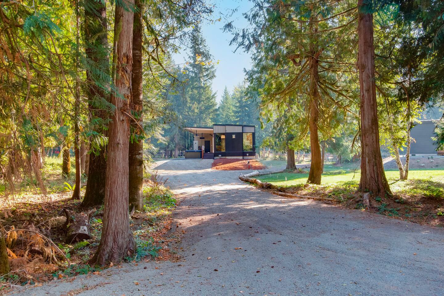 Modern cabin at the peaceful end of a rural road along with its sister cabin, it features private access to Johnson Creek with the views of Mount Rainier, two bathrooms, a large washer and gas dryer, a hot tub, and a covered outdoor area with propane heating, fire pit and grill. The modern and airy living space, high-end furnishings, and appliances evoke a home-away-from-home feeling. We are just under 5min from town and 20min from White Pass. Contact us to book both cabins and sleep 10.